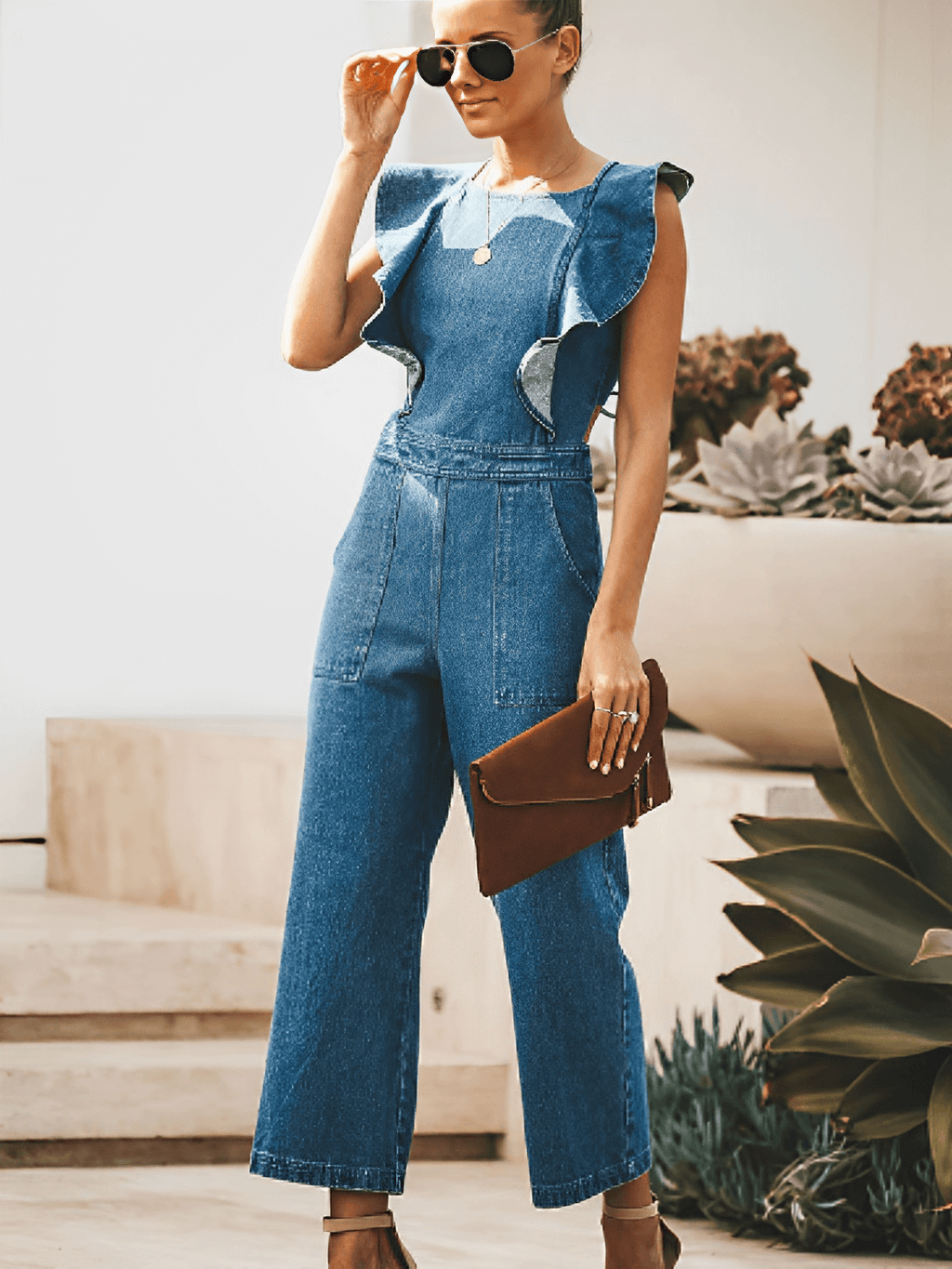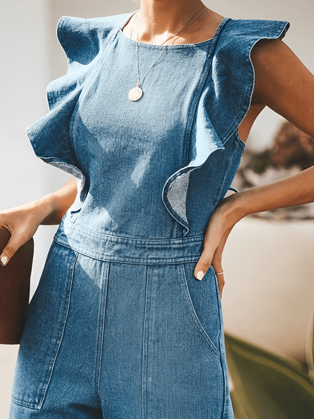 - 1x Macacão Jeans Feminino com Babados – Poliana